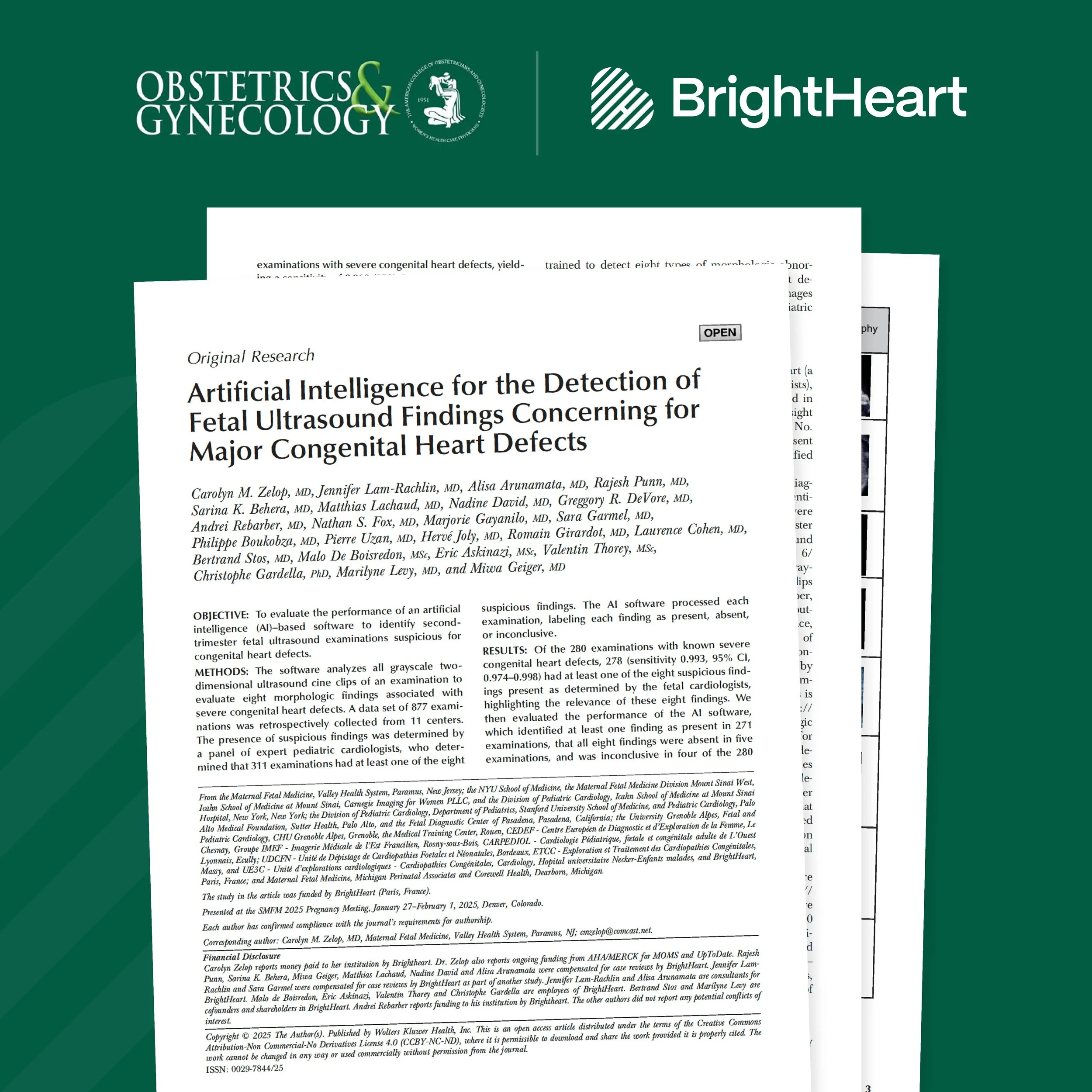 Lam-Rachlin et. al., “Use of Artificial Intelligence–Based Software to Aid in the Identification of Ultrasound Findings Associated With Fetal Congenital Heart Defects,” Obstetrics & Gynecology, 2025.